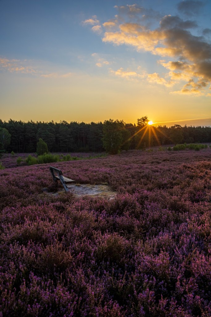 Ich machte meine zwei bis drei Bilder als HDR um einen schönen Sonnenstern und gleichzeitig die Fraben der Heide ablichten zu können und verließ die Szenerie.
