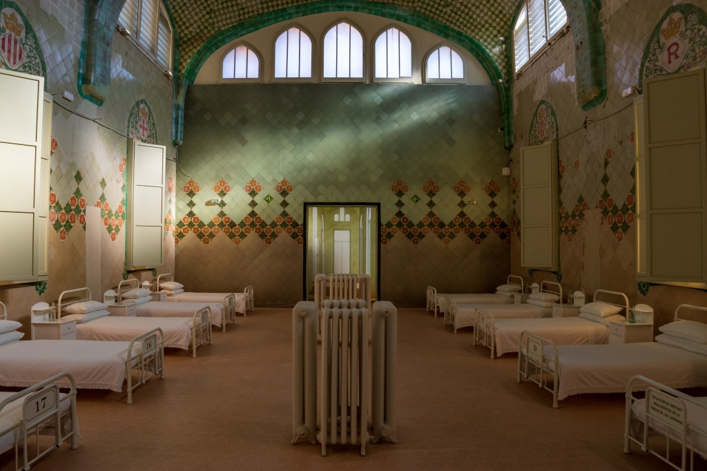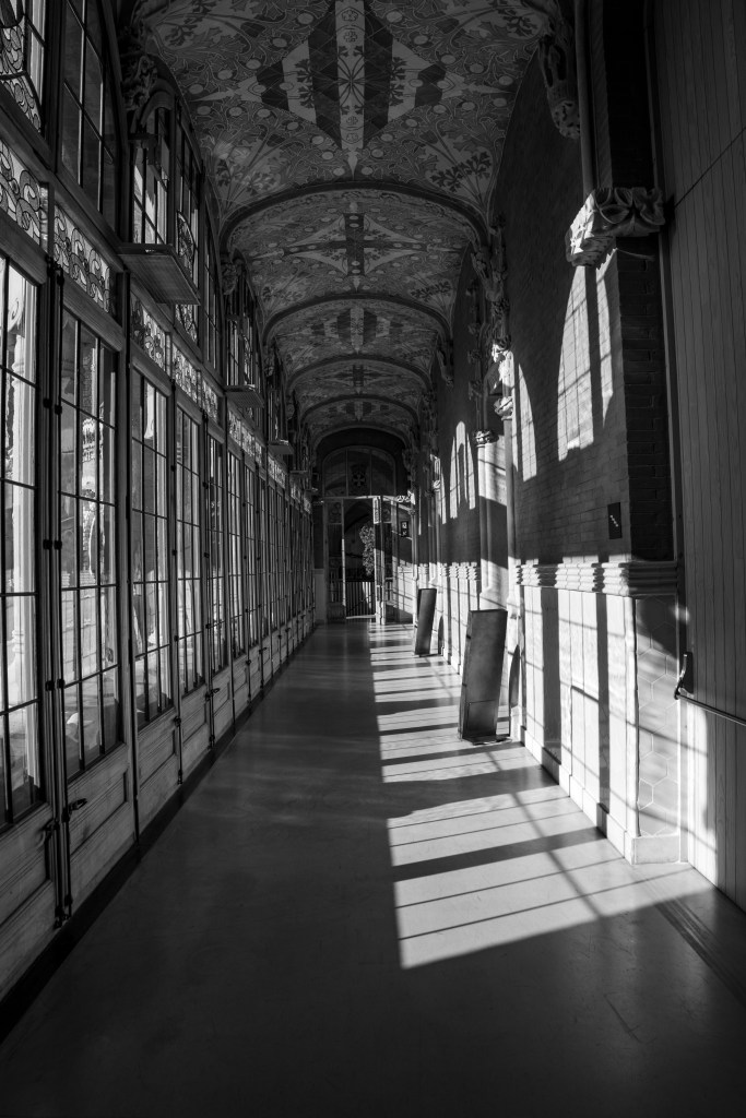 Nach der Tour haben wir kurz zum Mittag gegessen und unsere „blutenden“ Füße ausgeruht. Eigentlich wollte ich nichts essen und habe mir auch nichts bestellt. Dafür habe ich dann meine Frau angebettelt, mir etwas abzugeben. Hat prima funktioniert! Gesättigt fuhren wir dann mit dem Bus zum ehemaligem Krankenhaus von Barcelona, dem Hospital de la Santa Creu i Sant Pau. Hier gibt es so viele Motive, dass ich aus dem fotografieren gar nicht mehr rauskam. Eine tolle Architektur des Gebäudekomplexes, lichtdurchflutete Gänge und sogar ein alter nachgebauter Patientensaal. Absolut sehenswert.