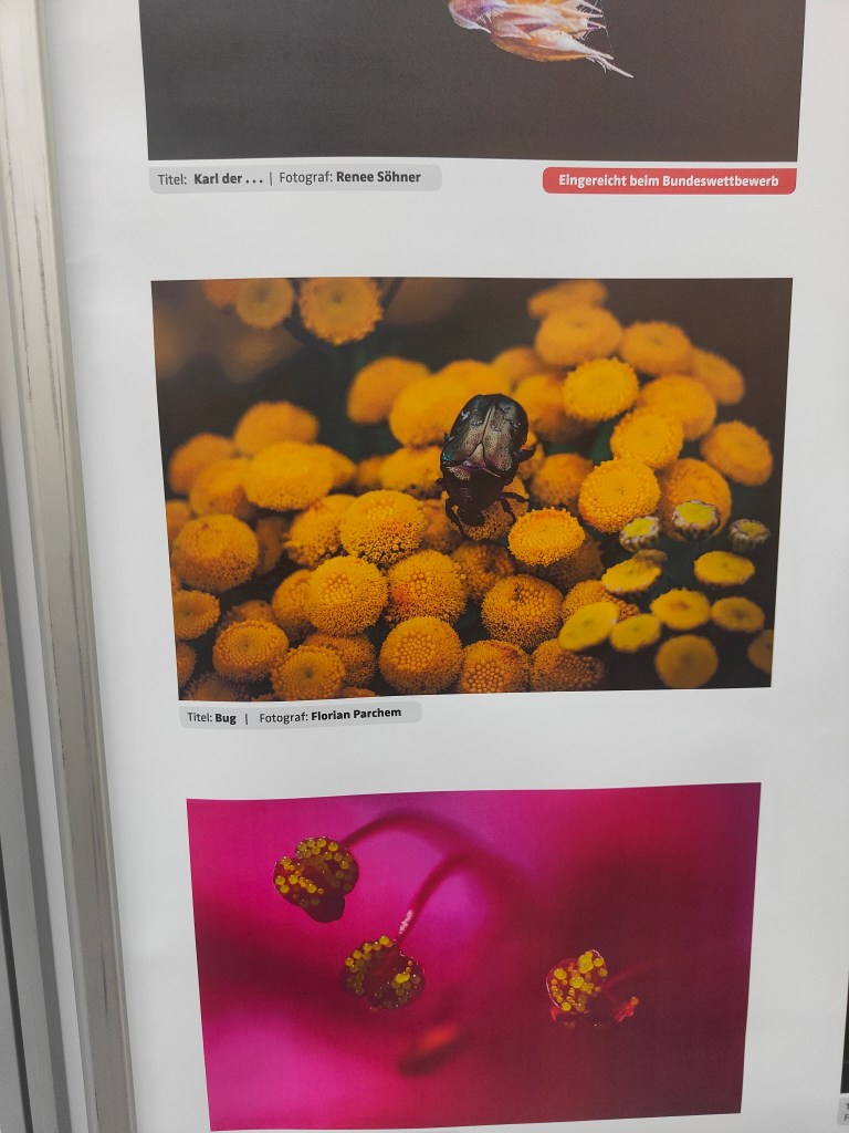 Die Qualität der ausgestellten Bilder überzeugt schon sehr, umso erstaunter war ich, dass insgesamt sechs Bilder von mir ausgestellt werden und die Nervosität stieg, als es dann zu der Siegerehrung kam. In dem Bereich Makrofotografie wurde ich mit dem zweiten Platz ausgezeichnet.