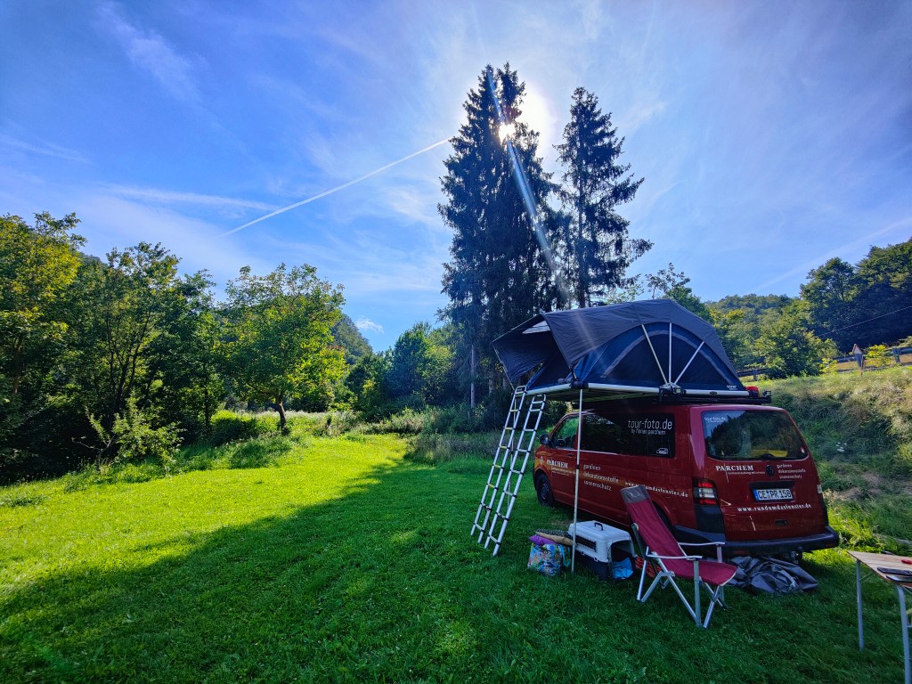 Unsere erste Station liegt im idyllischen Bayern. Der Campingplatz auf einem Bauernhof war ein echtes Highlight für die Kinder. Sie konnten Hühner füttern, Hasen streicheln und Wachteln bestaunen, während wir uns in der ländlichen Ruhe entspannten. Abends gab es lokale Leckereien vom Hofladen und einen beeindruckenden Regenbogen. Der perfekte Start in unser Abenteuer!