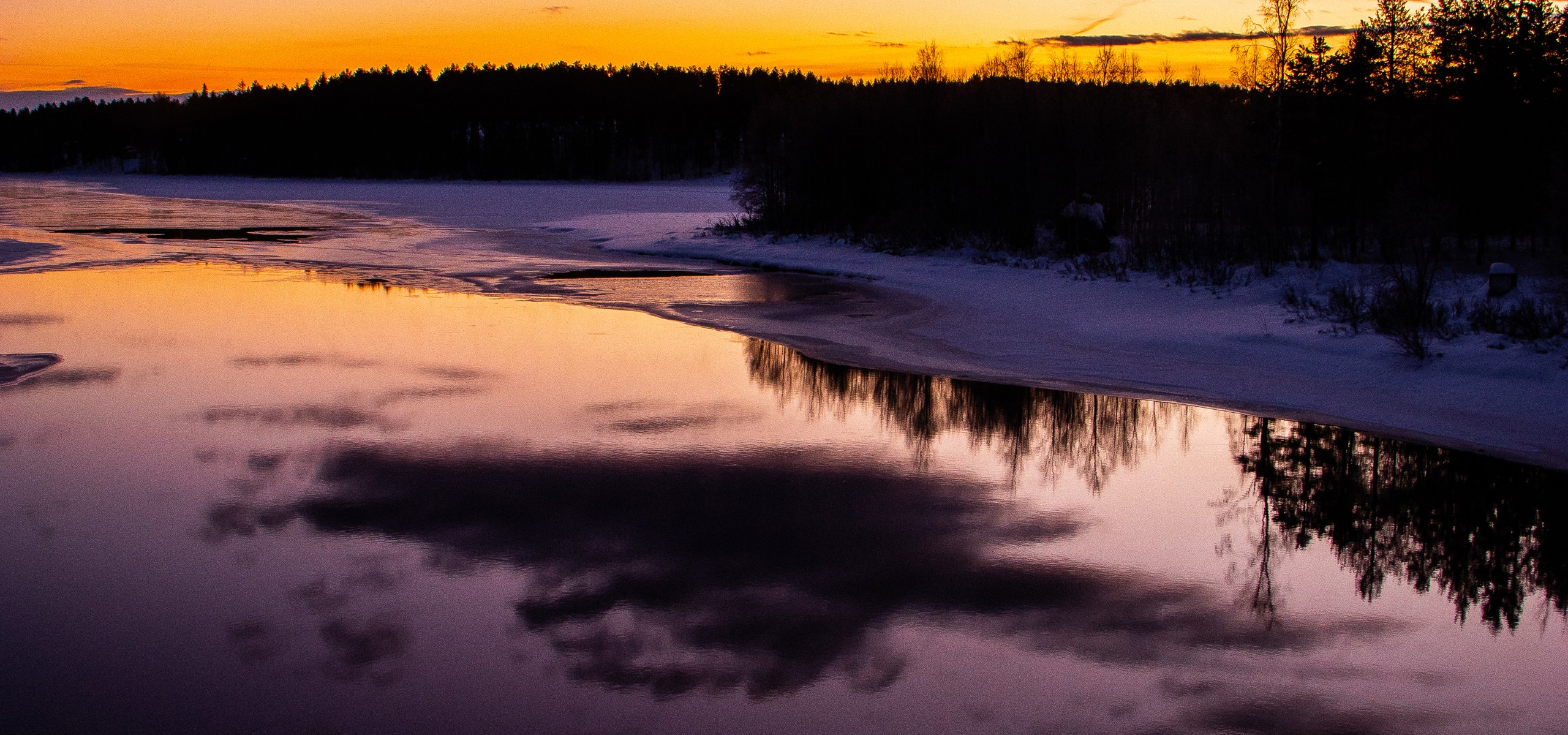 Wenn der Tag leise im Abend versinkt, taucht die blaue Stunde den Himmel in sanfte Farben aus Blau, Rosa und Gold. Die Wolken spiegeln sich im ruhigen Wasser und verschmelzen mit der verschneiten Landschaft am Waldrand. Ein Moment voller Stille, der den Winter von seiner zauberhaftesten Seite zeigt. ❄️